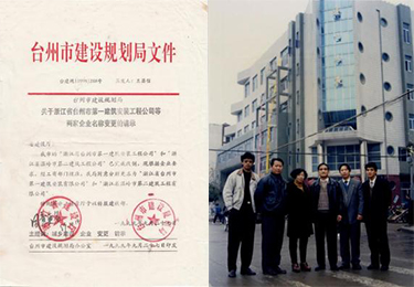 1999 年,时值国有集体企业产权制度改革大潮风起云涌, 温岭 市第二建筑工程公司完成了企业改制。1999 年 9 月 27 日, 经工商部 门核准,台州市建设规划局批准同意 (台建规„1999‟ 288 号),企 业更名为“浙江省温岭市第二建筑工程有限公司”。